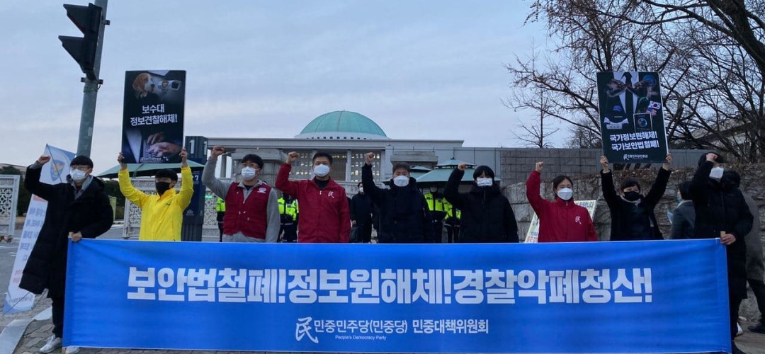 12월1일 민중민주당(민중당)과 민대위(국가보안법철폐국가정보원해체조선일보폐간을위한민중대책위원회)는 국회앞에서 <보안법철폐! 정보원해체! 경찰악폐청산!> 공동기자회견을 열었다.