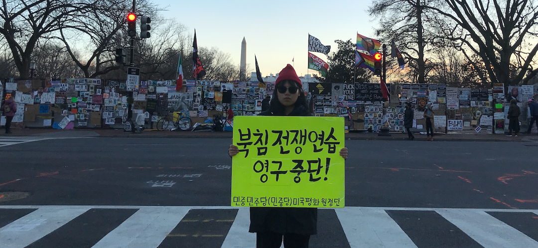 민중민주당(민중당) 미국평화원정단은 22일(현지시간) 워싱턴D.C백악관앞에서 <미군즉각철거!>, <북침전쟁연습 영구중단!>, <대북적대시정책 완전폐지!> 등을 촉구하는 평화시위를 총1325일째 진행했다.
