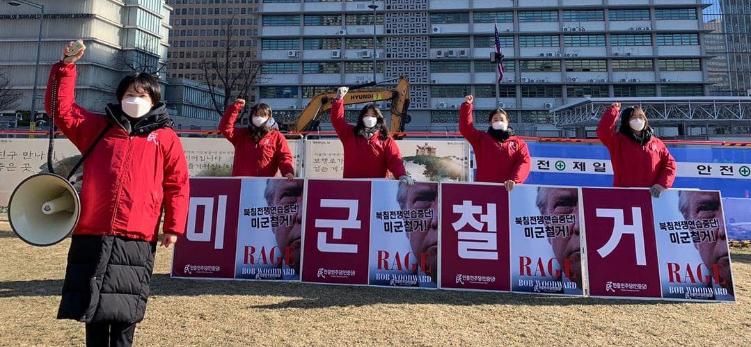 민중민주당(민중당)은 25일 미대사관앞에서 <북침전쟁연습영구중단! 미남워킹그룹즉각해체! 미군철거!>촉구 평화시위를 1620일째 진행했다.