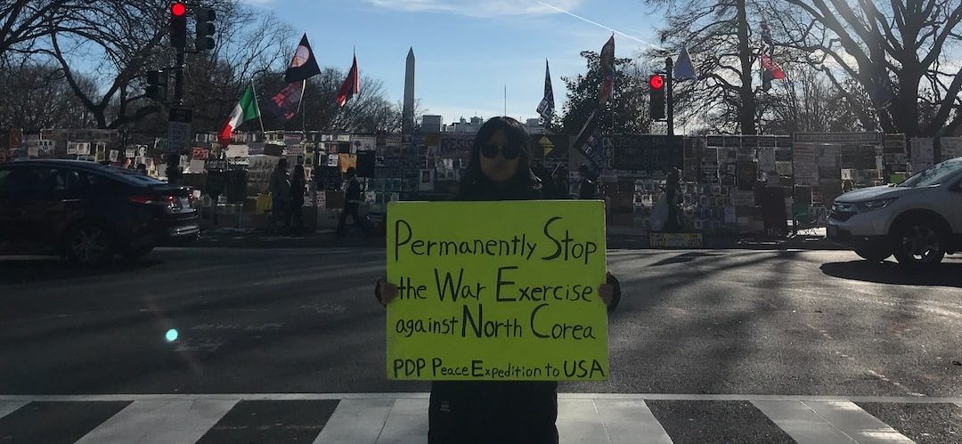 민중민주당(민중당) 미국평화원정단은 27일(현지시간) 워싱턴D.C백악관앞에서 <미군즉각철거!>, <북침전쟁연습 영구중단!>, <대북적대시정책 완전폐지!> 등을 촉구하는 평화시위를 총1330일째 진행했다.