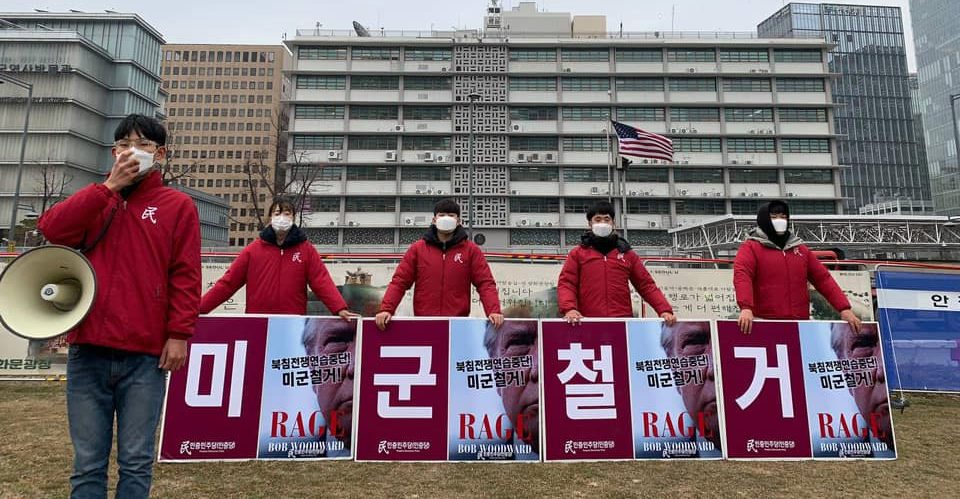 민중민주당(민중당)은 29일 미대사관앞에서 <북침전쟁연습영구중단! 미남워킹그룹즉각해체! 미군철거!>촉구 평화시위를 1624일째 진행했다.