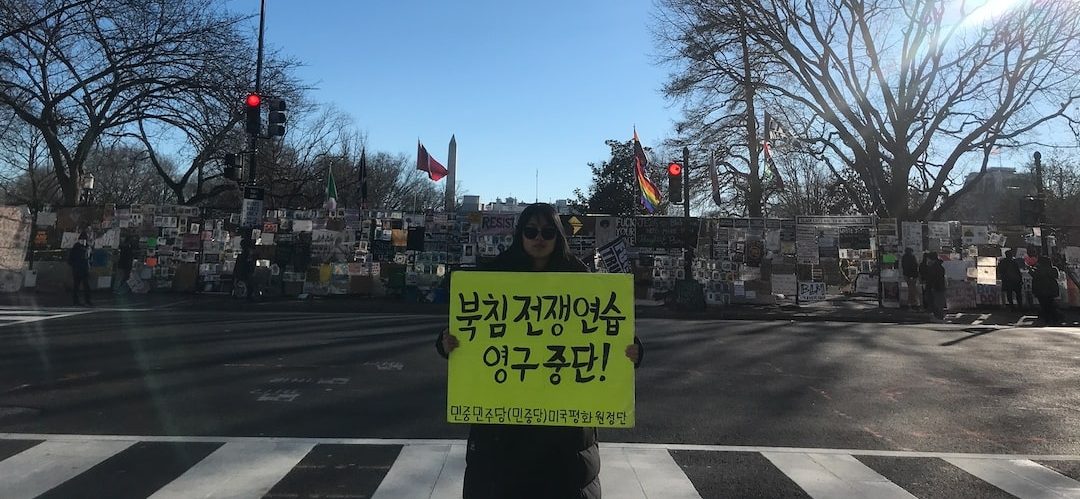 민중민주당(민중당) 미국평화원정단은 29일(현지시간) 워싱턴D.C백악관앞에서 <미군즉각철거!>, <북침전쟁연습 영구중단!>, <대북적대시정책 완전폐지!> 등을 촉구하는 평화시위를 총1332일째 진행했다.