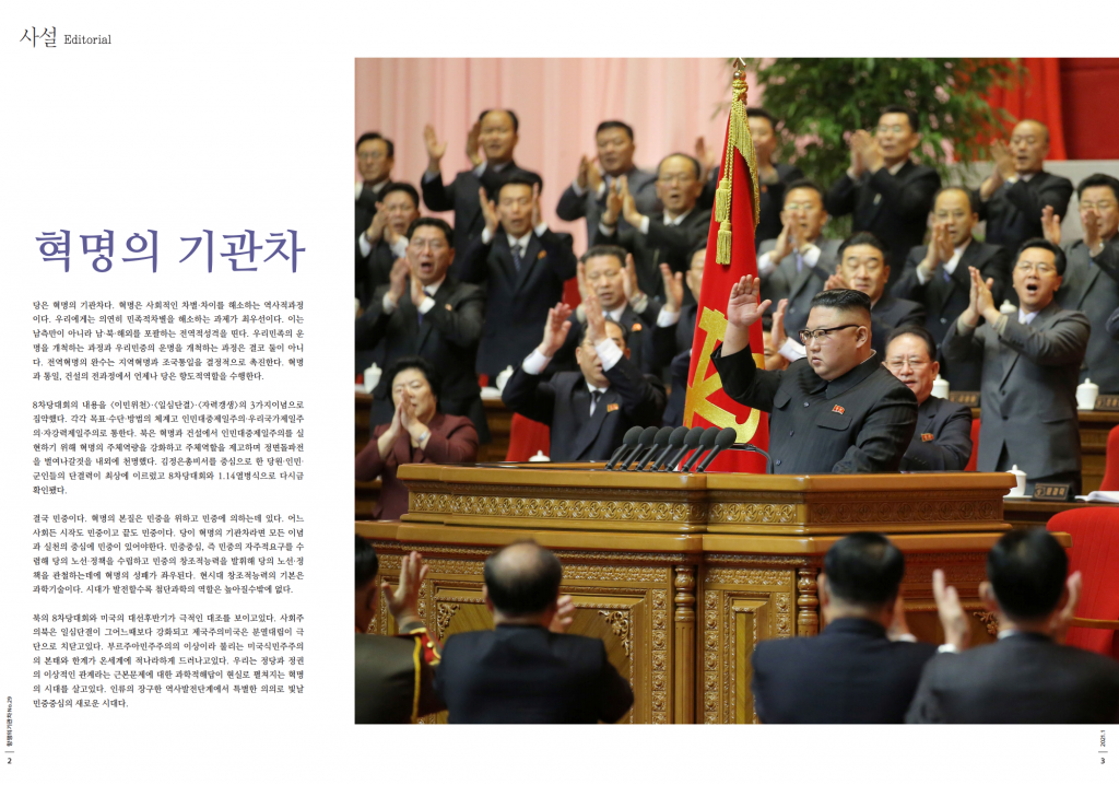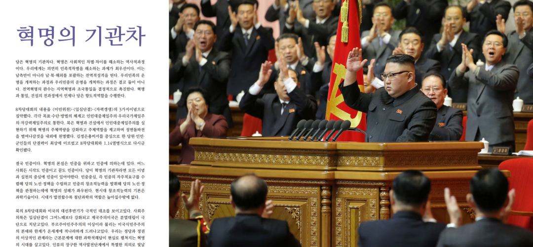8차당대회의 내용을 <이민위천>·<일심단결>·<자력갱생>의 3가지이념으로 집약했다. 각각 목표·수단·방법의 체계고 인민대중제일주의·우리국가제일주의·자강력제일주의로 통한다. 북은 혁명과 건설에서 인민대중제일주의를 실현하기 위해 혁명의 주체역량을 강화하고 주체역할을 제고하며 정면돌파전을 벌여나갈것을 내외에 천명했다. 김정은총비서를 중심으로 한 당원·인민·군인들의 단결력이 최상에 이르렀고 8차당대회와 1.14열병식으로 다시금 확인됐다.