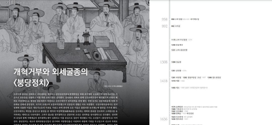 고려시대 왕권을 강화하고 귀족세력을 제압하는 중앙집권적관료체제확립을 위해 과거제를 도입했으며 유학적소양을 기준으로 관료들을 선출하고 이를 위한 교육기관도 설치했다. 공민왕의 개혁과 함께 신진사대부층이 형성됐으며 우왕의 폐위로 친원세력으로 형성된 권문세족이 척결되고 신진사대부가 정치권력을 쥐게 됐다. 반면 토지는 권문세족들에 의해 사유화된 상태에 중앙정부, 국가의 조세조차 보장되지못했으며 민중들의 생활은 더욱 처참했다. 신진사대부중에서도 먼저 정계에 진출한 이들은 대토지소유의 이권을 가졌고 뒤에 관직에 오른 이들은 불합리한 토지제도에 불만을 가지게 됐다. 신진사대부는 백성을 중심으로 왕권을 본 맹자의 역성혁명(易姓革命)을 강조하는 세력과 충효를 강조하며 고려왕조를 유지하려는 세력으로 나뉘어졌다. 고려가 불교를 정치철학으로 삼았다면 조선은 성리학을 정치철학으로 건국됐다. 성리학의 유입과 함께 지배계급의 정치철학논쟁이 심화되고 이를 중심으로 집단이 형성됐고 이는 조선중기 <붕당정치>로 이어진다. 붕당정치는 세조의 왕위찬탈공신들인 훈구파와 지방향인출신 사림파의 대립에 기원을 두고있으며 선조의 즉위로 사림파가 정권을 주도하게 된 이후 인사권의 핵심지위인 이조전랑직임명문제로 동인과 서인으로 분열됐다. 동인은 대체로 영남지역출신으로 조선초기 권력을 쥐지못하고 낙향한 이들의 영향을 받았으며 훈구파청산에 원칙적입장을 취했다. 서인은 서울근방에 기거한 고관들이 주를 이루면서 외척이 다수를 이뤘다. 이이는 동인과 서인의 중간을 자처하다가 나중에 서인에 합류했다. 동인은 사림파중 신진세력으로 김효원·류성룡·이산해등이 연합해 결성했으며 이들은 영남학파 이황의 문하였다. 이들은 정치적이념과 학문적경향에 따라 결집해 정파·학파적성격을 동시에 가졌다. 서인은 노론과 소론 으로, 동인은 북인과 남인으로 <사색당파>가 형성됐다. 노론은 성리학에 대한 원칙성으로 청을 멸시해 삼전도비를 쓴 문장을 비난하는데로부터 시작됐다. 청에 볼모로 갔다가 선진문물에 긍정적입장을 가지게 된 소현세자에 대해서도 부정적이었다. 노론은 영조시기 이인좌의난으로 소론·남인세력을 척결한뒤 정권을 완전장악했고 사도세자의 개혁에도 반대했다. 이후에는 기득권을 지키려는 <세도정치>의 외척, 안동(장동)김가세력으로 됐으며 항상 반개혁입장에 있었고 종당에는 제국주의침략에 굴복해 친일매국세력으로 전락했다. 1930년대 윤치호에 따르면 당시에도 노론은 남인정약용을 배척해 그의 책을 읽지도 사지도 않는다고 기록했다. 봉건시대정치는 왕을 중심으로 한 군주정치와 사상적기반에 종교를 두는 종교정치, 신분상속으로 권력을 유지하는 신분정치에서 벗어나지못했다. 조선말기 실학사상·개화사상이 나타나고 신분제도를 반대하는 동학사상이 등장해 이를 중심으로 한 조직적활동이 전개됐으나 민중에 의거하지못한 개혁세력은 새로운 시대를 개척하는데 실패하고 우리민족·민중도 제국주의세력의 침략에 의해 식민치하에 들어갔다.