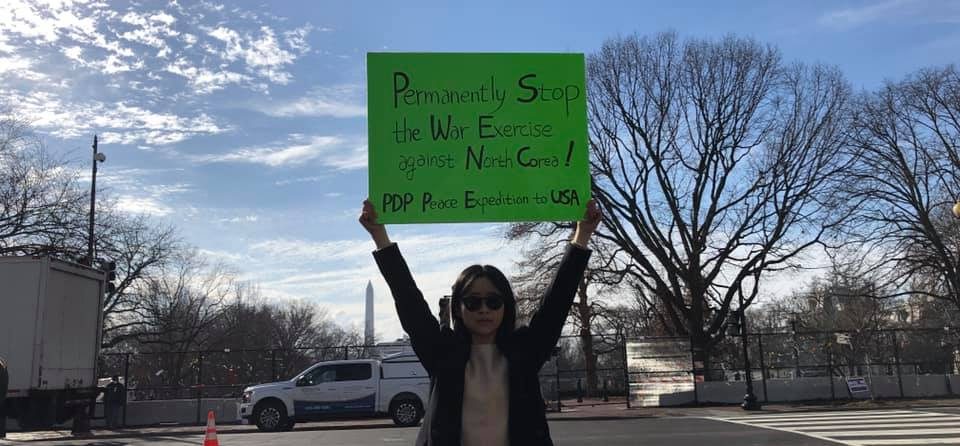 민중민주당(민중당) 미국평화원정단은 9일(현지시간) 워싱턴D.C백악관앞에서 <제국주의침략군대 미군철거!>, <북침핵전쟁연습 영구중단!>, <미남합동군사훈련 영구중단!>, <대북적대정책 완전폐지!>를 촉구하는 평화시위를 총1369일째 진행했다.