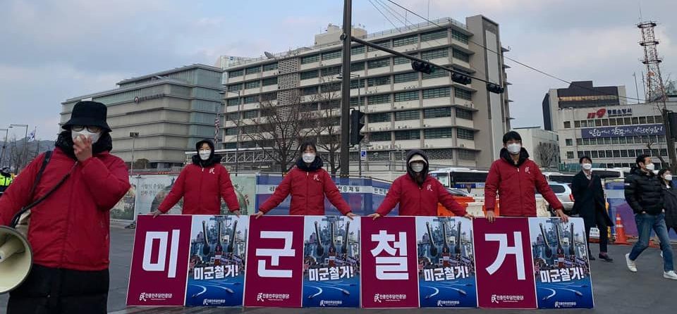 민중민주당(민중당)은 10일 미대사관앞에서 <북침전쟁연습영구중단! 미남워킹그룹즉각해체! 미군철거!>촉구 평화시위를 1667일째 진행했다.