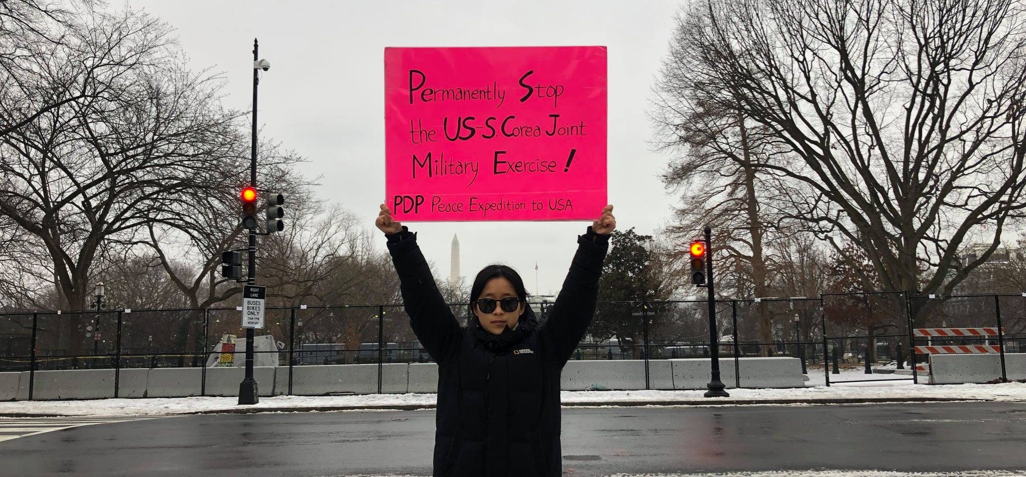 민중민주당(민중당) 미국평화원정단은 18일(현지시간) 워싱턴D.C백악관앞에서 <제국주의침략군대 미군철거!>, <북침핵전쟁연습 영구중단!>, <미남합동군사훈련 영구중단!>, <대북적대정책 완전폐지!>를 촉구하는 평화시위를 총1378일째 진행했다.