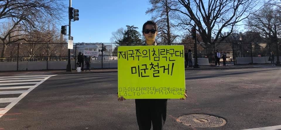 민중민주당(민중당) 미국평화원정단은 24일(현지시간) 워싱턴D.C백악관앞에서 <제국주의침략군대 미군철거!>, <북침핵전쟁연습 영구중단!>, <미남합동군사훈련 영구중단!>, <대북적대정책 완전폐지!>를 촉구하는 평화시위를 총1384일째 진행했다.