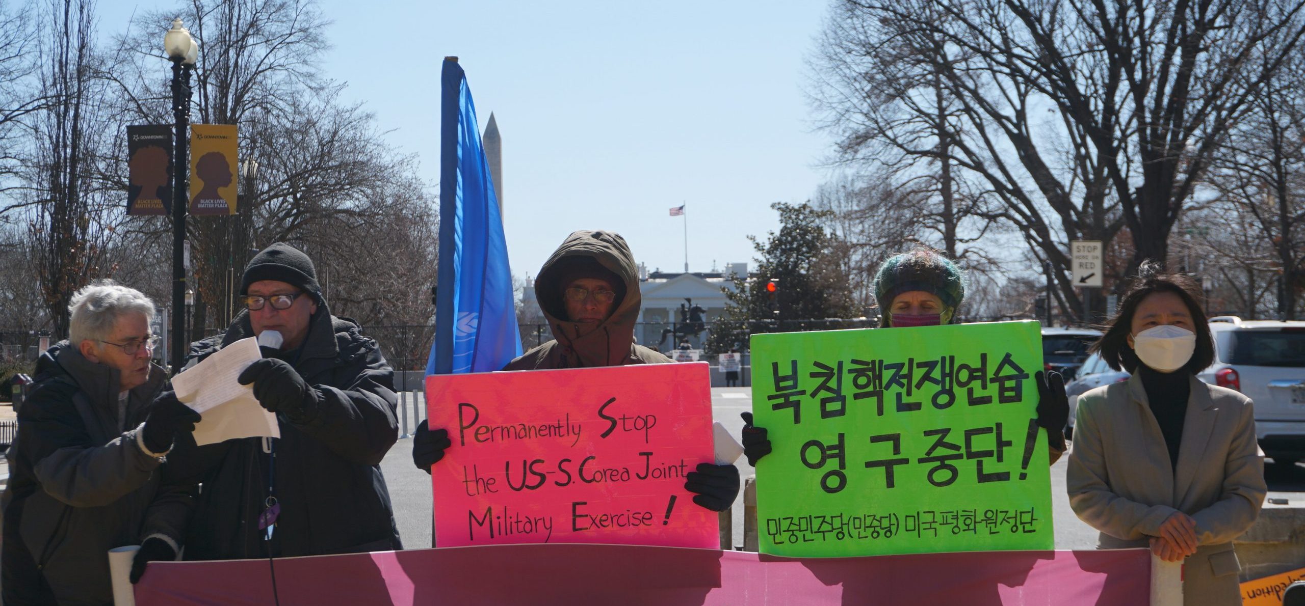 5일 민중민주당미국평화원정단이 미현지평화단체인 카톨릭워커와 백악관앞에서 <키리졸브북침핵전쟁연습영구중단! 미군철거!>집회를 공동주최했다.