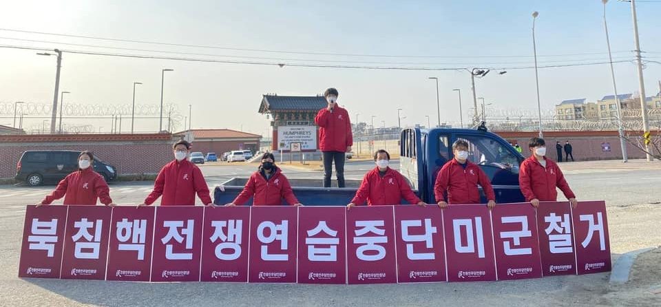 8일 반미투쟁본부는 평택캠프험프리스미군기지와 주남미군사령부앞, 오산공군기지를 선회하며 선동연설을 진행했다.