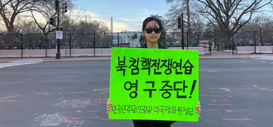 해외원정미국원정 〈미군철거로 예속과 굴종의 역사를 청산해야〉 10차미국평화원정 32일째 .. 미국평화원정시위 총1399일째 2021년 3월 13일 FacebookTwitter 민중민주당(민중당) 미국평화원정단은 11일(현지시간) 워싱턴D.C백악관앞에서 <제국주의침략군대 미군철거!>, <북침핵전쟁연습 영구중단!>, <미남합동군사훈련 영구중단!>, <대북적대정책 완전폐지!>를 촉구하는 평화시위를 총1399일째 진행했다. 바이든정부의 대북적대정책으로 코리아반도의 군사적긴장도가 갈수록 높아지는 가운데 원정단의 시위는 완강하게 이어지고 있다.