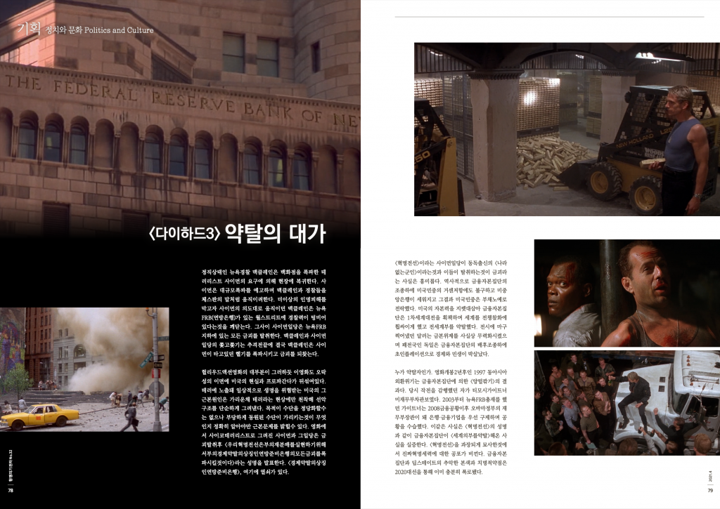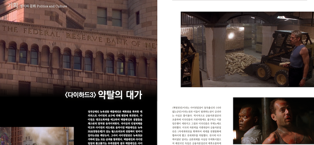 헐리우드액션영화의 대부분이 그러하듯 이영화도 오락성의 이면에 미국의 현실과 프로파간다가 뒤섞여있다. 테러에 노출돼 일상적으로 생명을 위협받는 미국의 그 근본원인은 가리운채 테러라는 현상에만 천착해 선악구조를 단순하게 그려낸다. 목적이 수단을 정당화할수는 없으나 부당하게 동원된 수단이 가리키는것이 무엇인지 정확히 알아야만 근본문제를 밝힐수 있다. 영화에 서 사이코테러리스트로 그려진 사이먼과 그일당은 금괴탈취후 <우리혁명전선은부의재분배를실현하기위해서부의경제약탈의상징인연방준비은행의모든금괴를폭 파시킬것이다>라는 성명을 발표한다. <경제약탈의상징인연방준비은행>, 여기에 열쇠가 있다.