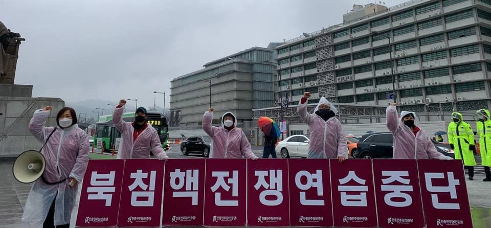 민중민주당(민중당)은 20일 미대사관앞에서 <북침전쟁연습영구중단! 미남워킹그룹즉각해체! 미군철거!>촉구 평화시위를 1705일째 진행했다.