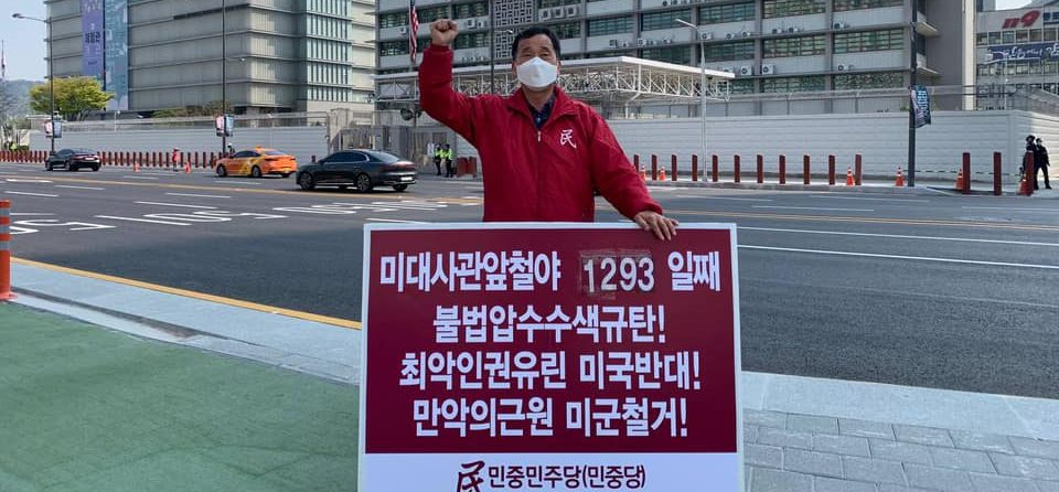 민중민주당(민중당)은 11일 미대사관앞에서 <북침전쟁연습영구중단! 모든내정간섭중단! 미군철거!>촉구 평화시위를 1727일째 진행했다.