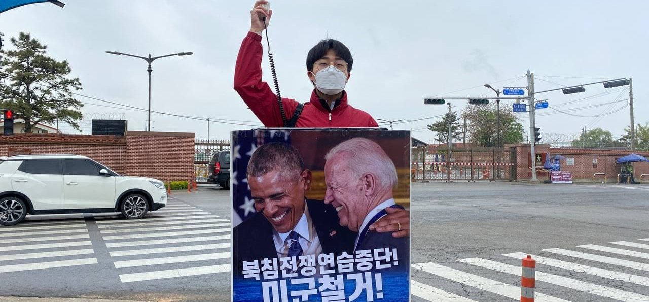 1일 민중민주당(민중당)학생위원회는 평택컴프험프리스앞에서 정당연설회를 열고 <메이데이정신계승! 미남합동북침전쟁연습중단! 미군철거!>를 외쳤다.