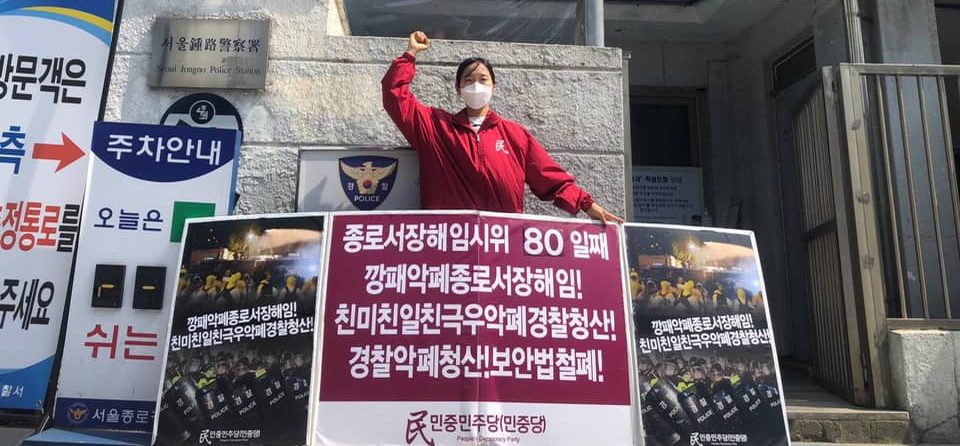 Home 실천 민중민주당, 〈친미극우무리·친미친극우견찰규탄〉 평화시위423일째 견찰청앞보수대·정보견찰해체투쟁367일째 종로서장해임시위80일째