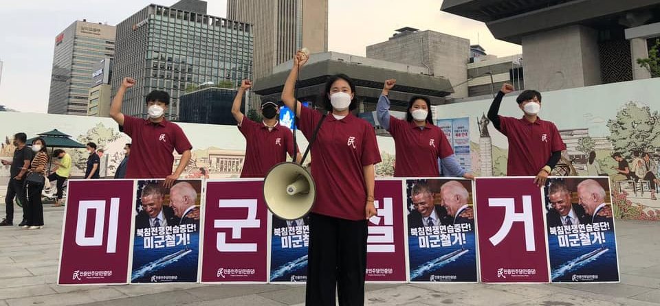 민중민주당(민중당)은 22일 미대사관앞에서 <북침전쟁연습영구중단! 모든내정간섭중단! 미군철거!>촉구 평화시위를 1799일째 진행했다.