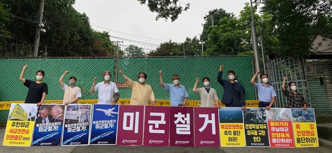 이어 <전쟁의화근 만악의근원 미군은 이땅을 떠나라!>, <우리 민중이 주인되는 새세상 건설하자!>, <우리 민족의 힘으로 조국통일 앞당기자!> 구호를 힘차게 외쳤다.