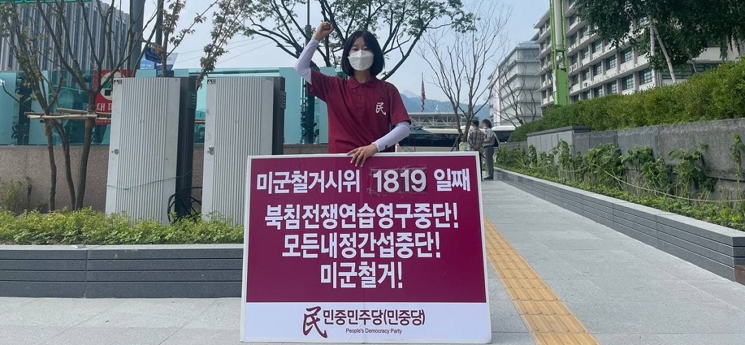 민중민주당(민중당)은 12일 미대사관앞에서 <북침전쟁연습영구중단! 모든내정간섭중단! 미군철거!>촉구 평화시위를 1819일째 진행했다.