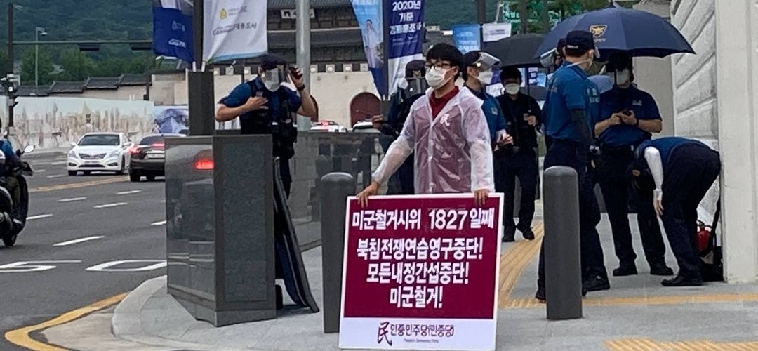 민중민주당(민중당)은 20일 미대사관앞에서 <북침전쟁연습영구중단! 모든내정간섭중단! 미군철거!>촉구 평화시위를 1827일째 진행했다.