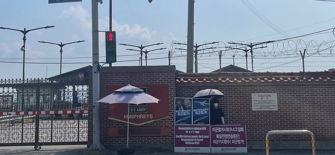주남미군사령부가 있는 평택험프리스기지앞에서는 <북침전쟁연습중단! 미군기지환수! 미군철거!> 구호피시를 들고 미군철거시위를 943일째 진행했다.