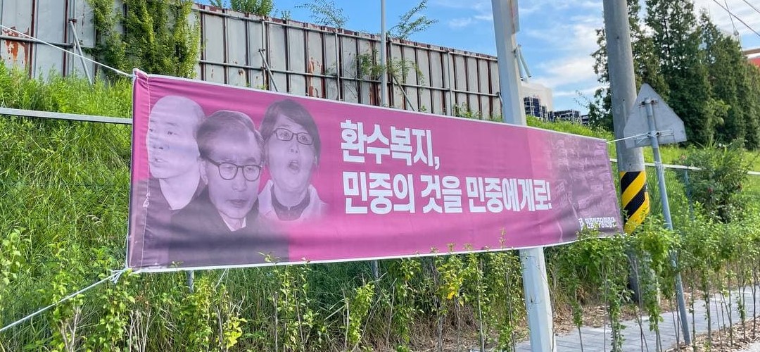 이어 <전쟁의 화근 만악의 근원 미군은 이땅을 떠나라!>, <우리민중이 주인되는 새세상 건설하자!>, <우리민족의 힘으로 조국통일 앞당기자!>, <환수복지, 민중의 것을 민중에게로!> 구호가 적힌 가로막을 내걸고 스티커와 포스터를 집중적으로 부착했다.