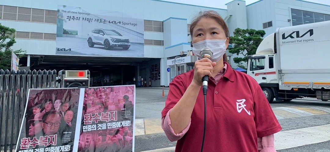 이어 기아차광주공장 제1공장 남문에서 당신문과 리플렛을 나눠주며 정당연설회를 진행했다. 이날 민중민주당은 광주지역 5개 진보운동단체들과 함께 긴급선전투쟁도 전개했다.