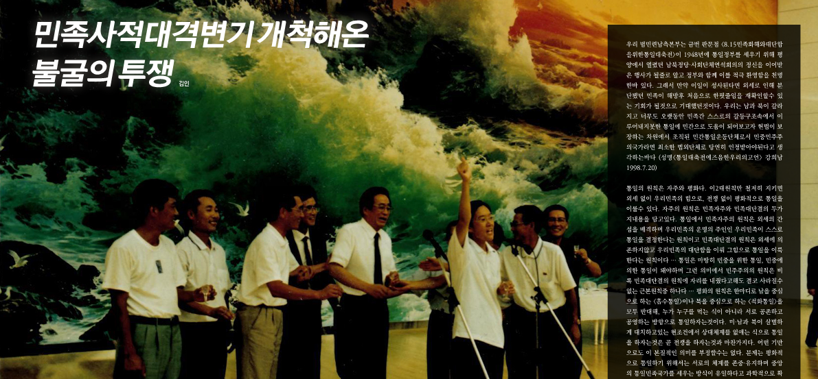 우리 범민련남측본부는 금번 판문점 <8.15민족화해와대단합을위한통일대축전>이 1948년에 통일정부를 세우기 위해 평양에서 열렸던 남북정당·사회단체연석회의의 정신을 이어받은 행사가 될줄로 알고 정부와 함께 이를 적극 환영함을 천명한바 있다. 그래서 만약 이일이 성사된다면 외세로 인해 분단됐던 민족이 해방후 처음으로 한핏줄임을 재확인할수 있는 기회가 될것으로 기대했던것이다. 우리는 남과 북이 갈라지고 너무도 오랫동안 민족간 스스로의 갈등구조속에서 이루어내지못한 통일에 민간으로 도움이 되어보고자 헌법이 보장하는 차원에서 조직된 민간통일운동단체로서 민중민주주의국가라면 최소한 법외단체로 당연히 인정받아야된다고 생각하는바다 (성명<통일대축전에즈음한우리의고언> 강희남 1998.7.20)