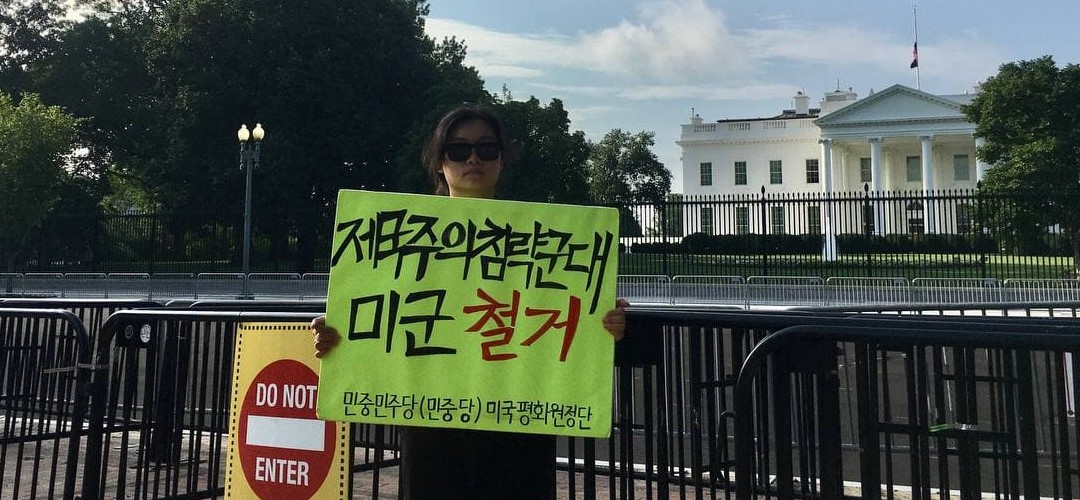 민중민주당(민중당) 미국평화원정단은 30일(현지시간) 워싱턴D.C 백악관앞에서 <제국주의침략군대 미군철거!>, <북침전쟁연습 영구중단!>, <대북적대정책 완전폐기!>, <굴욕적인 미일남동맹 해체!>, <쿠바 내정간섭 즉각 중단!>을 촉구하는 평화시위를 총1564일째 진행했다.