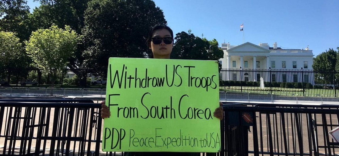 민중민주당(민중당) 미국평화원정단은 2일(현지시간) 워싱턴D.C 백악관앞에서 <제국주의침략군대 미군철거!>, <북침전쟁연습 영구중단!>, <대북적대정책 완전폐기!>, <굴욕적인 미일남동맹 해체!>, <쿠바 내정간섭 즉각 중단!>을 촉구하는 평화시위를 총1567일째 진행했다.