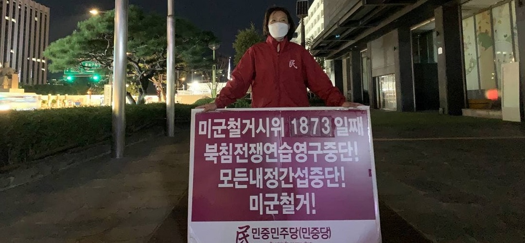 민중민주당(민중당)은 4일 미대사관앞에서 <북침전쟁연습영구중단! 모든내정간섭중단! 미군철거!>촉구 평화시위를 1873일째 진행했다.