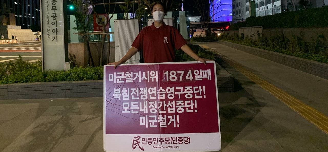 민중민주당(민중당)은 5일 미대사관앞에서 <북침전쟁연습영구중단! 모든내정간섭중단! 미군철거!>촉구 평화시위를 1874일째 진행했다.