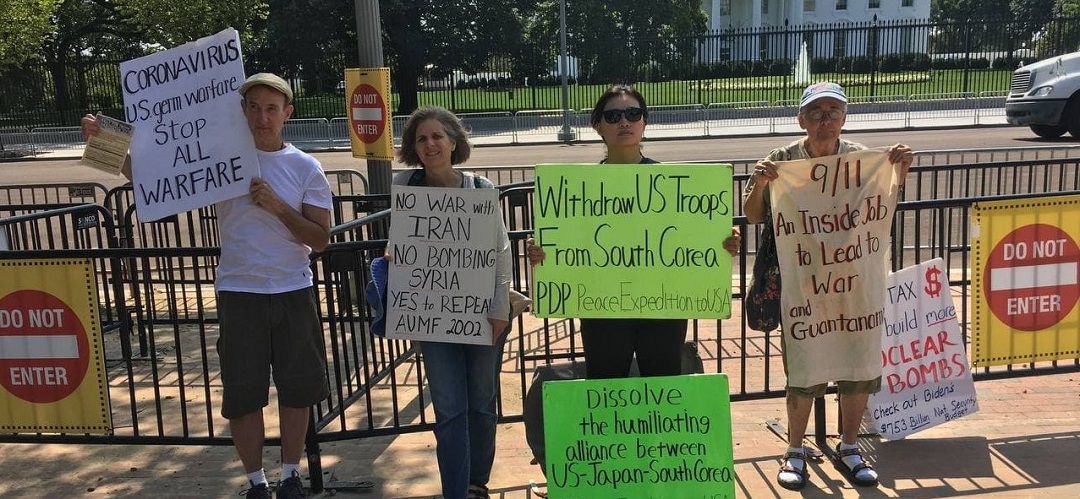 민중민주당(민중당) 미국평화원정단은 10일(현지시간) 워싱턴D.C 백악관앞에서 <제국주의침략군대 미군철거!>, <북침전쟁연습 영구중단!>, <대북적대정책 완전폐기!>, <굴욕적인 미일남동맹 해체!>, <쿠바 내정간섭 즉각 중단!>을 촉구하는 평화시위를 총1575일째 진행했다.