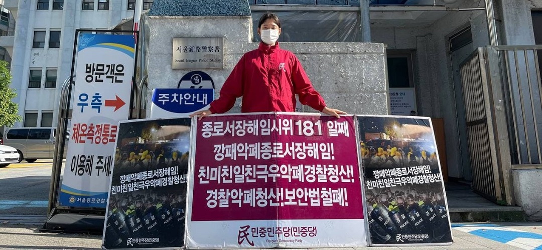 민중민주당 〈친미극우무리·친미친극우견찰규탄〉 평화시위524일째 견찰청앞보수대·정보견찰해체투쟁468일째 종로서장해임시위181일째