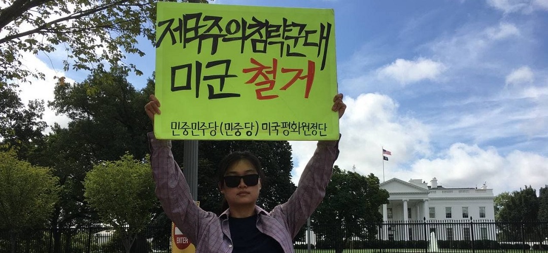 미국원정 〈제국주의침략군 미군을 철거하라〉 10차미국평화원정 219일째 .. 미국평화원정시위 총1586일째 2021년 9월 23일 FacebookTwitter 민중민주당(민중당) 미국평화원정단은 21일(현지시간) 워싱턴D.C 백악관앞에서 <제국주의침략군대 미군철거!>, <북침전쟁연습 영구중단!>, <대북적대정책 완전폐기!>, <굴욕적인 미일남동맹 해체!>, <쿠바 내정간섭 즉각 중단!>을 촉구하는 평화시위를 총1586일째 진행했다. 원정단의 시위를 보고 베트남에서 관광온 시민들은 엄지를 치켜들며 동의한다고 응원했다.