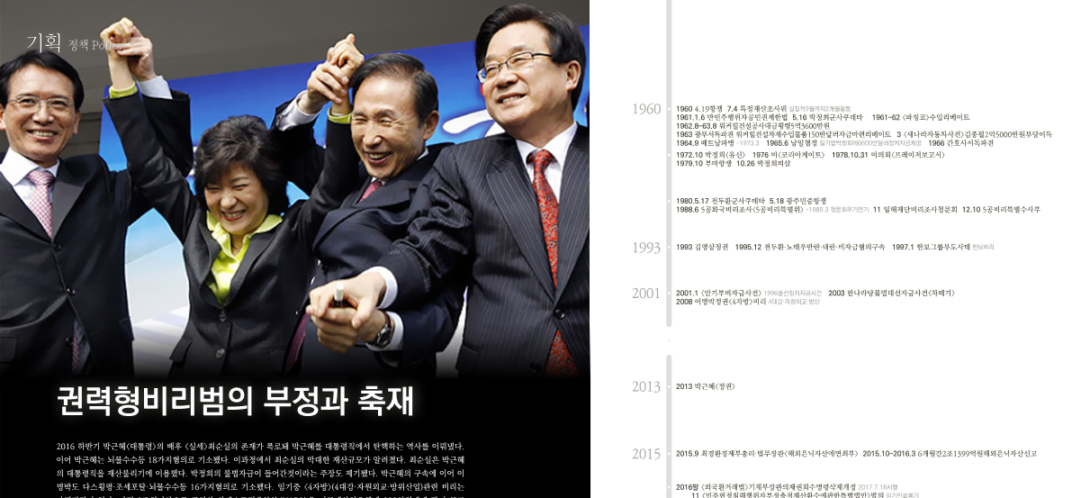 2016 하반기 박근혜<대통령>의 배후 <실세>최순실의 존재가 폭로돼 박근혜를 대통령직에서 탄핵하는 역사를 이뤄냈다. 이어 박근혜는 뇌물수수등 18가지혐의로 기소됐다. 이과정에서 최순실의 막대한 재산규모가 알려졌다. 최순실은 박근혜의 대통령직을 재산불리기에 이용했다. 박정희의 불법자금이 들어간것이라는 주장도 제기됐다. 박근혜의 구속에 이어 이명박도 다스횡령·조세포탈·뇌물수수등 16가지혐의로 기소됐다. 임기중 <4자방>(4대강·자원외교·방위산업)관련 비리는 다뤄진적이 없다. 가령 2조원이상으로 구입한 하베스트정유부분<NARL>을 미국계상업은행에 200억원대에 팔며 국고에 심각한 피해를 남겼다. 이명박과 측근들이 챙긴 비리자금뿐아니라 계약자체의 범법성에 기초해 세금손실전액을 보전하는 벌금을 부과해야한다. 그렇게 책임을 물어야할 자금은 4대강35조원·자원외교40조원·방위산업40조원등 100조원대에 이른다. 역사적으로 이승만·이기붕의 부정부패도 1960 4.19항쟁당시 중요한 쟁점이었으나 이후 수립된 정부의 제한성으로 이기붕의 서대문저택만 국가로 환수돼 4.19기념도서관으로 개조됐을뿐 이승만의 사저인 이화장과 기타동산등은 상속자들에게 넘어갔다. 박정희군사파쇼정권하의 부정축재는 단한번도 제대로 다뤄진적이 없다. 1960~70년대 박정희정권당시 강탈한 재산으로 수립된 정수장학회·육영재단·영남학원·육영수기념사업회등도 국가가 환수해야할 대상이다. 1975 미하원에서 남코리아의 중앙정보부에 의해 반박정희여론·활동을 무마하기 위한 대규모회유·매수·협박·공작이 벌어졌다는 사실이 폭로됐다. <코리아게이트>라고 알려진 이사건에서 박정희정권은 매년50만~100만달러, 미상하원의원90명에게 500만달러의 뇌물을 제공한것으로 알려졌다. 1978.10 미의회에 제출된 <프레이저보고서>에는 1960년대 박정희정권에서 서독의 차관과 베트남참전지원금을 불법은닉한 스위스계좌번호가 적시돼있다고 한다. 박정희는 남일협정체결을 둘러싸고 일본기업으로부터 6600만달러를 받은것을 비롯해 대일본수출과 경제개발과정에서도 비자금을 챙겼다. 문재인정부는 <해외범죄수익환수합동조사단>활동을 진행했으나 법률적근거가 삭제된것이 확인되면서 성과 없이 종료됐다. 2012 영국조세정의네트워크는 1970~2010 남코리아에서 해외조세피난처로 이전된 자산이 총7790억달러(약900조원)에 달한다고 밝혔다. 절대금액으로 중국·러시아에 이어 남코리아가 3위지만 인구수·GDP규모대비해외도피금액으로는 압도적세계1위다. 불법적인 해외유출을 포함해 권력형비리로 약탈당한 민중의 자산을 되찾아야한다.