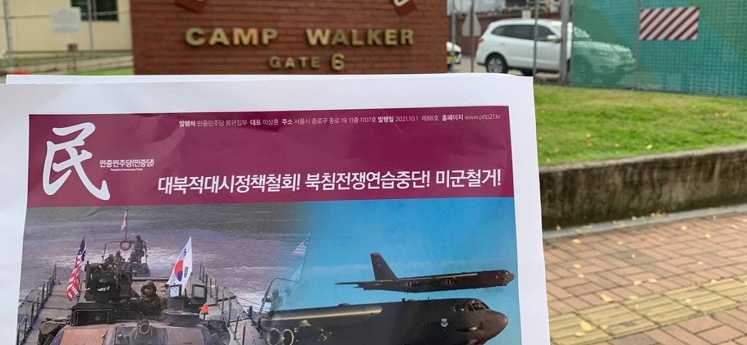 정당연설회 민중민주당, 대구캠프워커미군기지인근서 선전활동전개 … 〈전쟁화근 만악근원 미군철거!〉 2021년 10월 13일 FacebookTwitter 13일 민중민주당(민중당)은 대구캠프워커미군기지인근에서 선전활동을 전개했다. 실천단은 미군기지인근 주거지역에 <전쟁의 화근 만악의 근원 미군은 이땅을 떠나라!>, <환수복지, 민중의 것을 민중에게로!> 구호의 포스터를 부착했다. 아울러 가가호호 민중민주당신문 民88호 <대북적대시정책철회! 북침전쟁연습중단! 미군철거!>를 배포했다. 실천단은 <우리민족·민중은 반드시 미군을 몰아내고 미군없는 세상에서 민주주의와 통일을 이뤄낼 것>이라고 밝혔다.