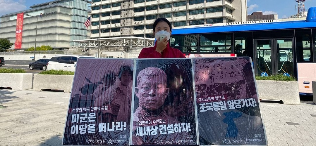 민중민주당(민중당)은 14일 미대사관앞에서 <북침전쟁연습영구중단! 모든내정간섭중단! 미군철거!>촉구 평화시위를 1913일째 진행했다.