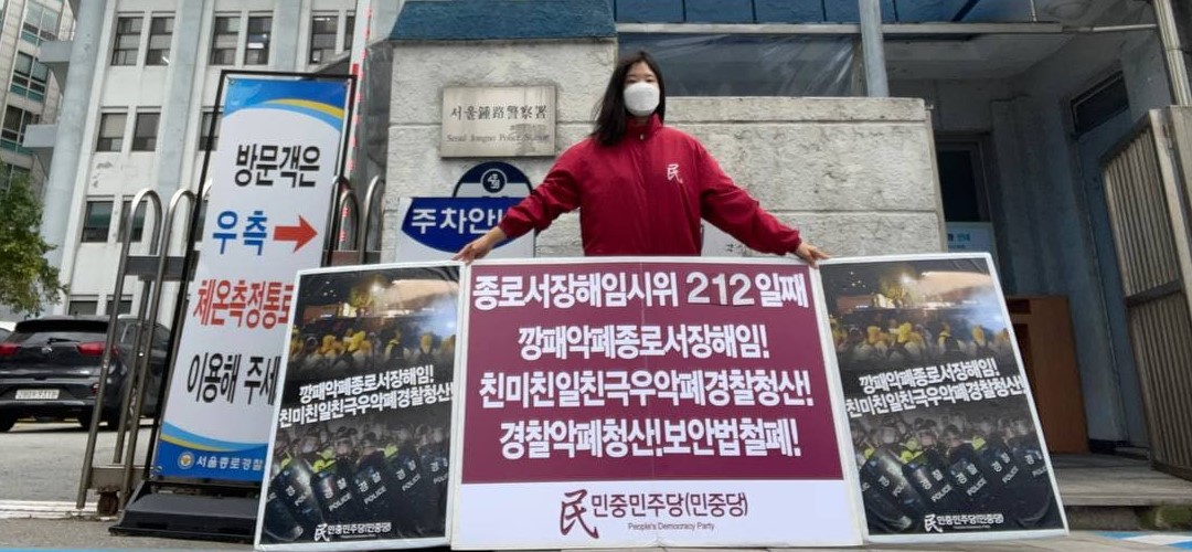 Home 실천 평화시위 민중민주당 〈친미극우무리·친미친극우견찰규탄〉 평화시위555일째 견찰청앞보수대·정보견찰해체투쟁499일째 종로서장해임시위212일째