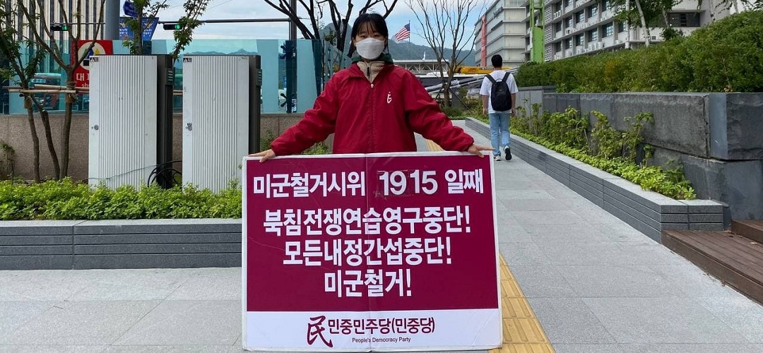 민중민주당(민중당)은 16일 미대사관앞에서 <북침전쟁연습영구중단! 모든내정간섭중단! 미군철거!>촉구 평화시위를 1915일째 진행했다.