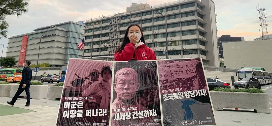 민중민주당(민중당)은 18일 미대사관앞에서 <북침전쟁연습영구중단! 모든내정간섭중단! 미군철거!>촉구 평화시위를 1917일째 진행했다.