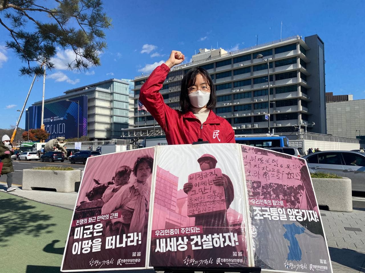 민중민주당(민중당)은 12일 미대사관앞에서 <북침전쟁연습영구중단! 모든내정간섭중단! 미군철거!>촉구 평화시위를 1942일째 진행했다.