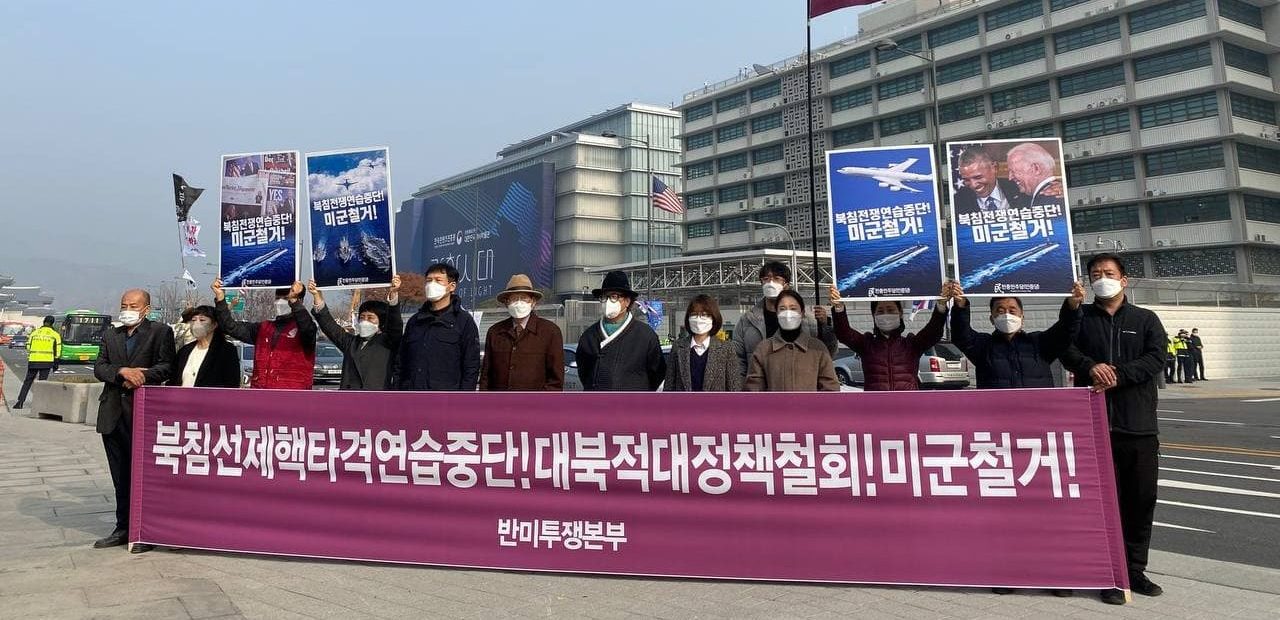 Home 실천 기자회견·집회 반미투본 〈북침선제핵타격연습중단!대북적대정책철회!미군철거!〉 기자회견