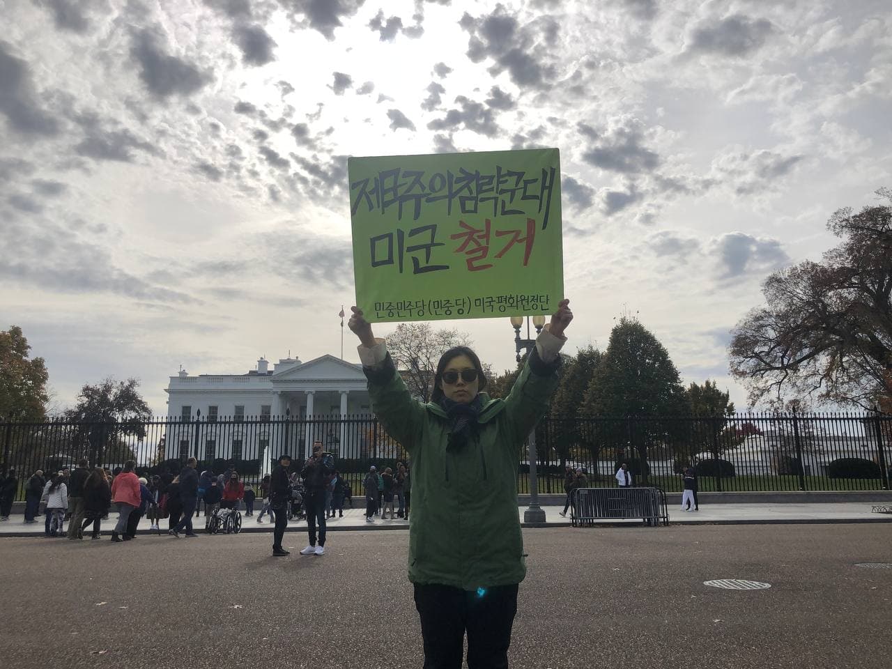 민중민주당(민중당) 미국평화원정단은 21일(현지시간) 워싱턴D.C 백악관앞에서 <제국주의침략군대 미군철거!>, <북침전쟁연습 영구중단!>, <대북적대정책 완전폐기!>, <굴욕적인 미일남동맹 해체!>, <쿠바 내정간섭 즉각 중단!>을 촉구하는 평화시위를 총1647일째 진행했다.