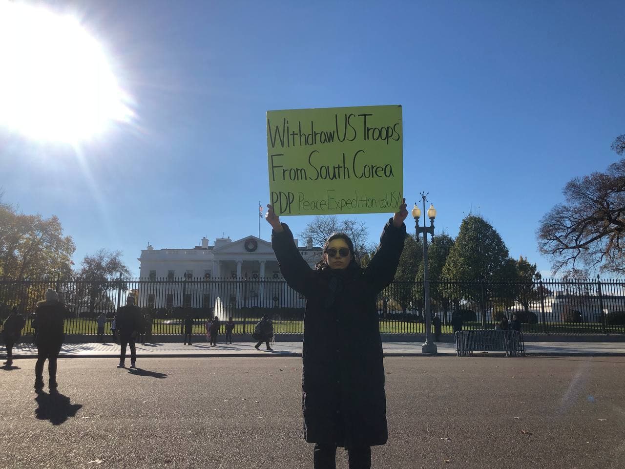 이에 원정단은 <미군은 남코리아를 보호하기 위해 주둔한다고 하지만 실제로는 매년 전쟁연습을 벌이며 전쟁위기를 불러오고 남코리아사람들을 위협했다>고 설명했다.