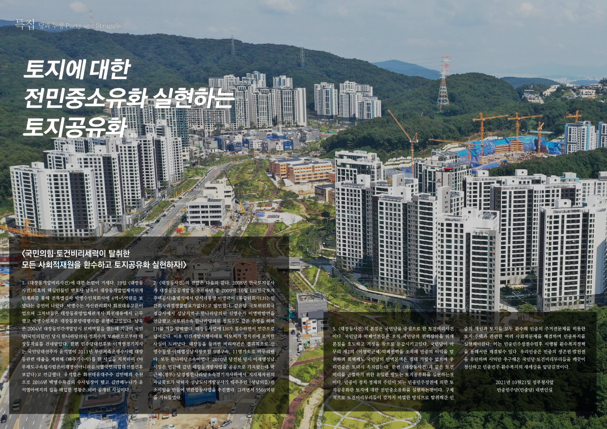 <국민의힘·토건비리세력이 탈취한 모든 사회적재원을 환수하고 토지공유화 실현하자!>