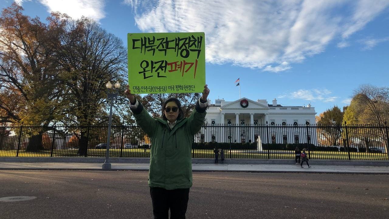 민중민주당(민중당) 미국평화원정단은 3일(현지시간) 워싱턴D.C 백악관앞에서 <제국주의침략군대 미군철거!>, <북침전쟁연습 영구중단!>, <대북적대정책 완전폐기!>, <굴욕적인 미일남동맹 해체!>, <쿠바 내정간섭 즉각 중단!>을 촉구하는 평화시위를 총1659일째 진행했다.