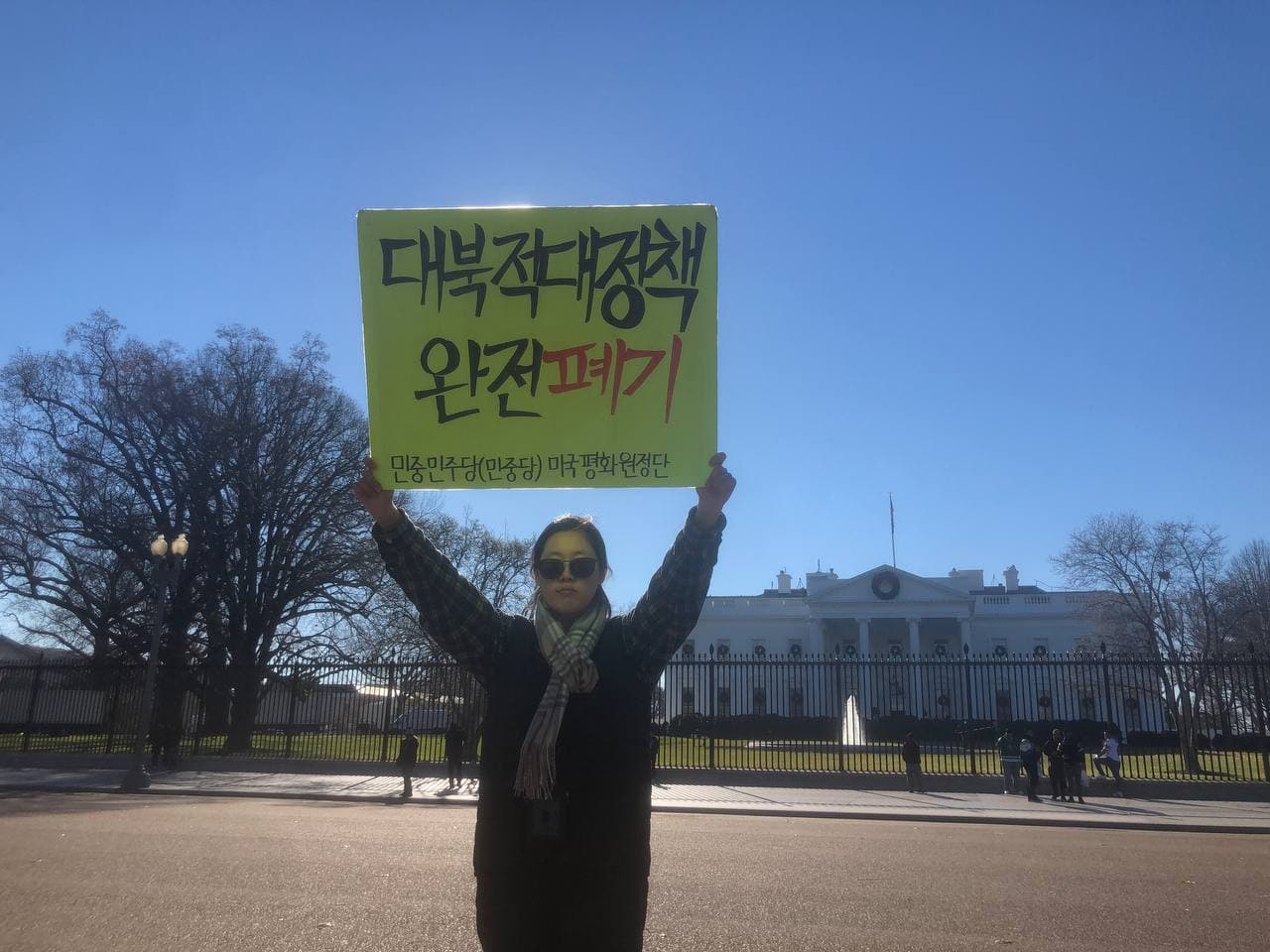 민중민주당(민중당) 미국평화원정단은 13일(현지시간) 워싱턴D.C 백악관앞에서 <제국주의침략군대 미군철거!>, <북침전쟁연습 영구중단!>, <대북적대정책 완전폐기!>, <굴욕적인 미일남동맹 해체!>, <쿠바 내정간섭 즉각 중단!>을 촉구하는 평화시위를 총1669일째 진행했다.