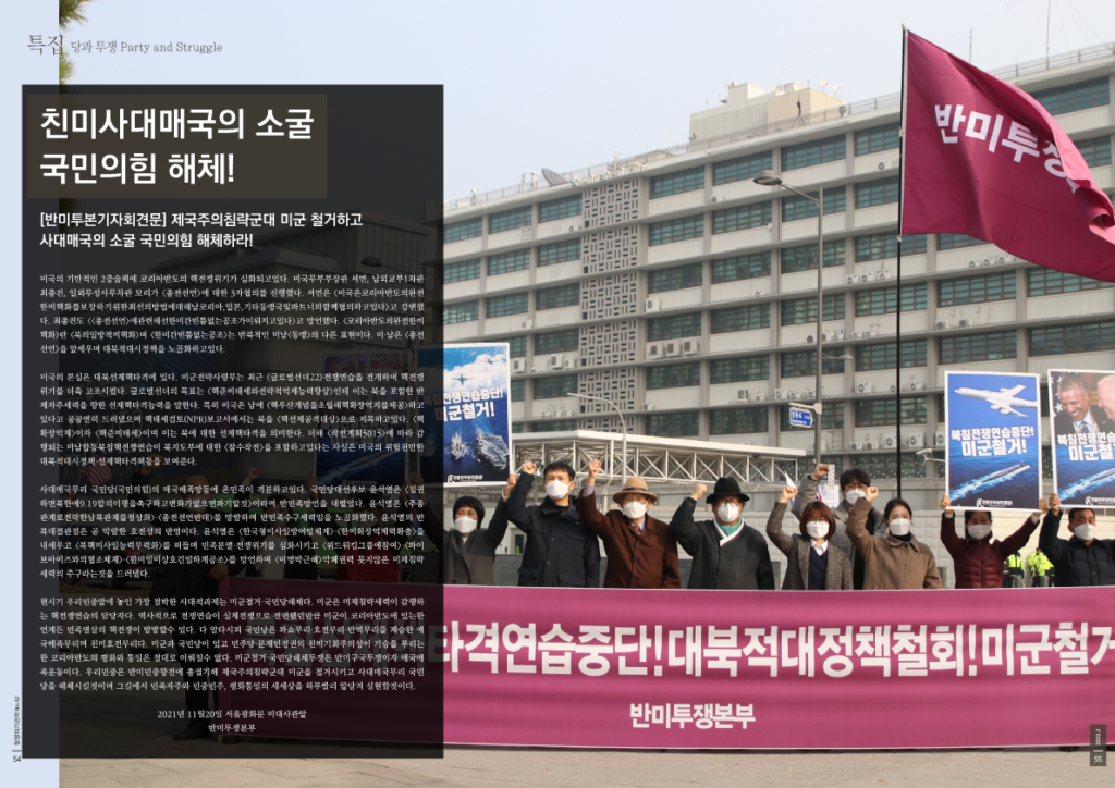 [반미투본기자회견문] 제국주의침략군대 미군 철거하고 사대매국의 소굴 국민의힘 해체하라!