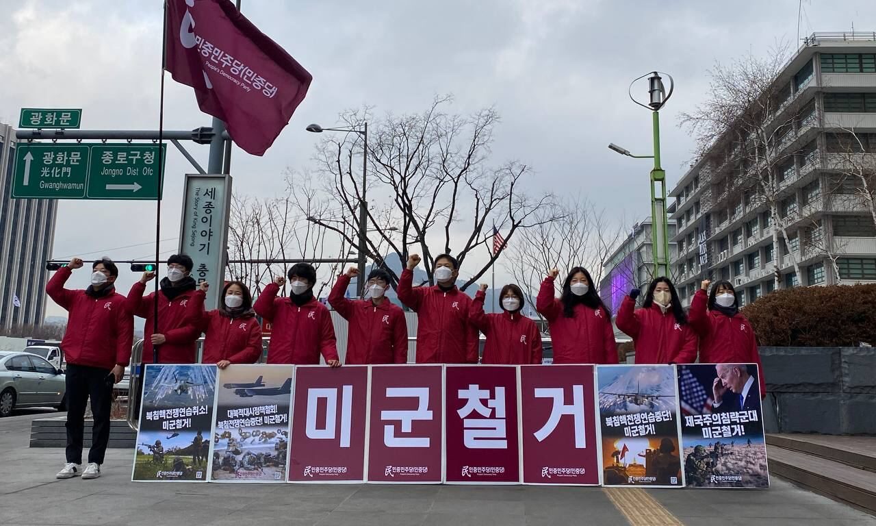 Home 실천 정당연설회 민중민주당 〈북침전쟁연습중단! 전쟁반대평화수호! 미군철거!〉 미대사관앞정당연설회
